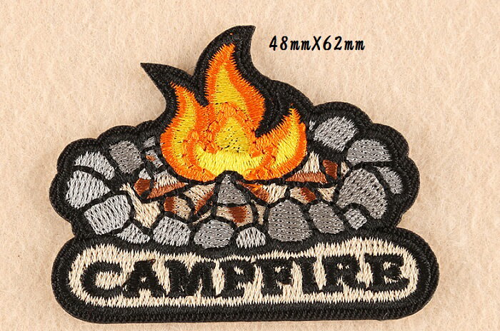 送料全国一律190円キャンプ 焚火 ワッペン アップリケ 炎 手芸材料 アイロン対応